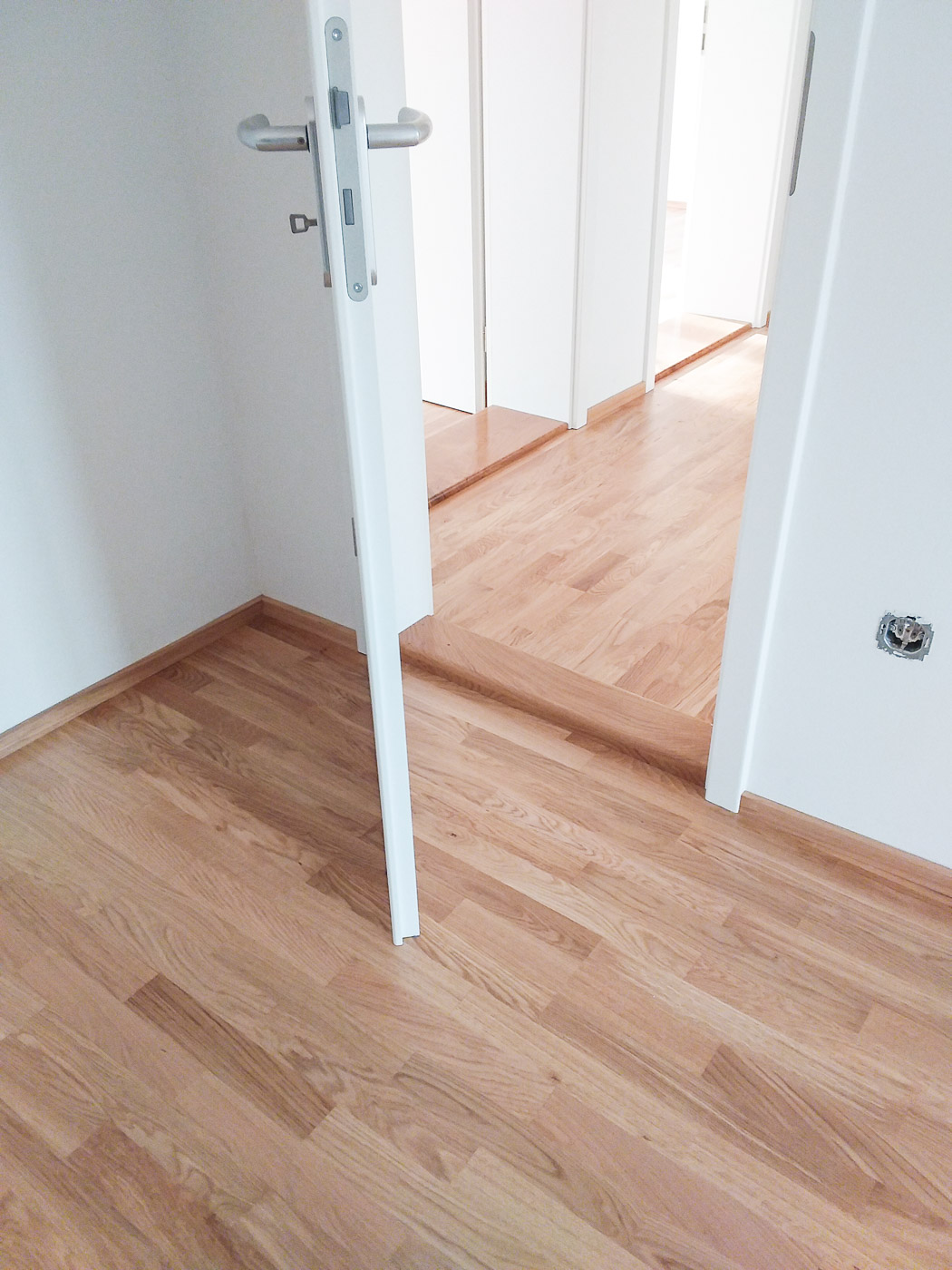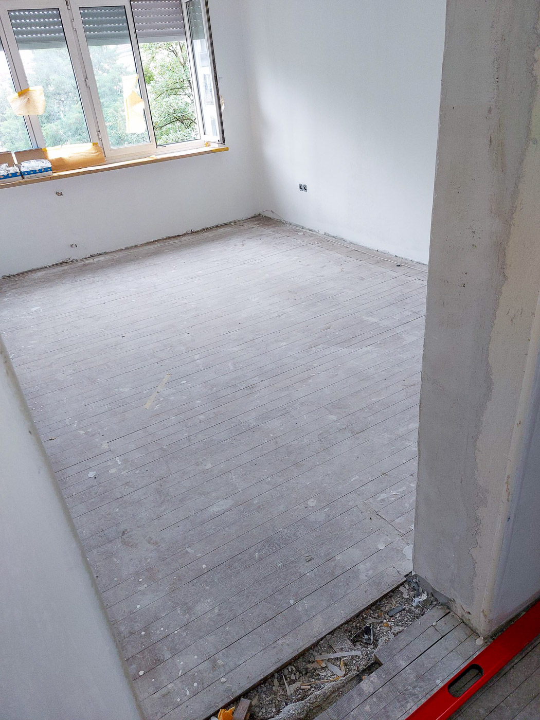 hieß es vor kurzem für den Boden in dieser Wohnung. Erst den alten Boden rausreißen und dann einen wunderschönen neuen Schiffsboden aus Eiche verlegen.