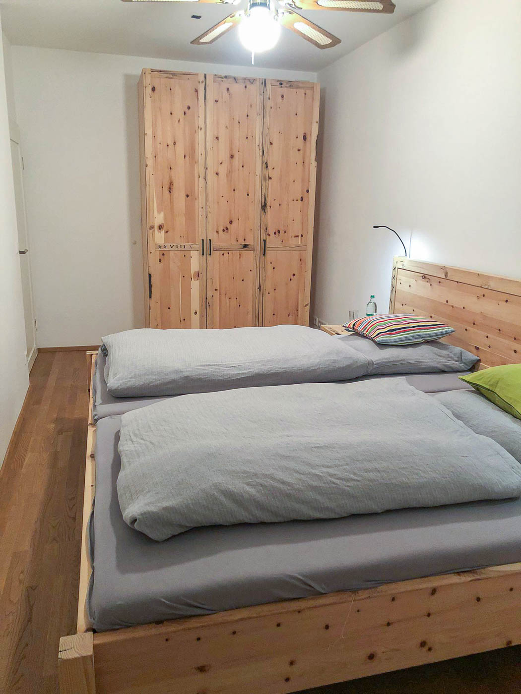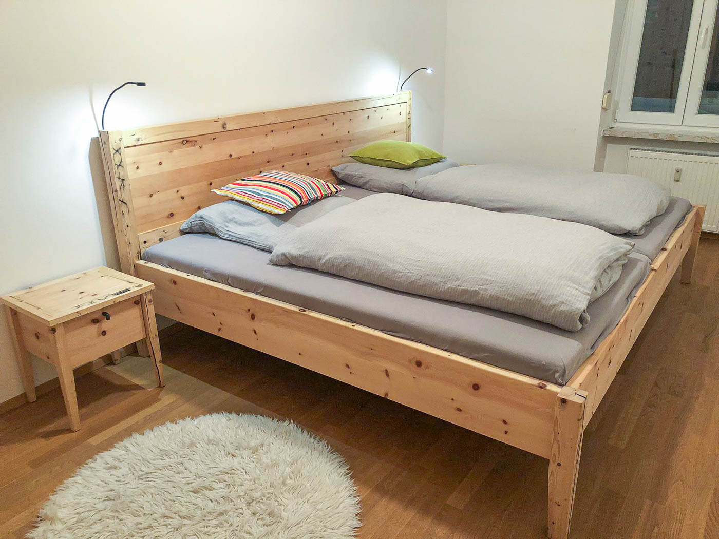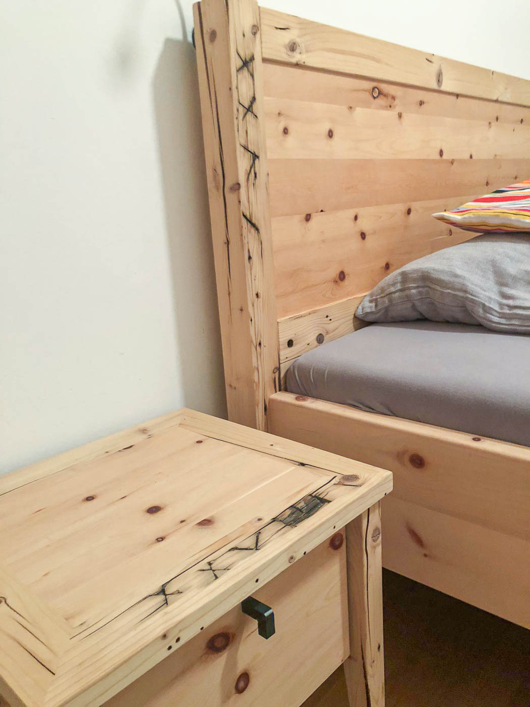 Schlafzimmer aus Altholz und neuer Zirbe